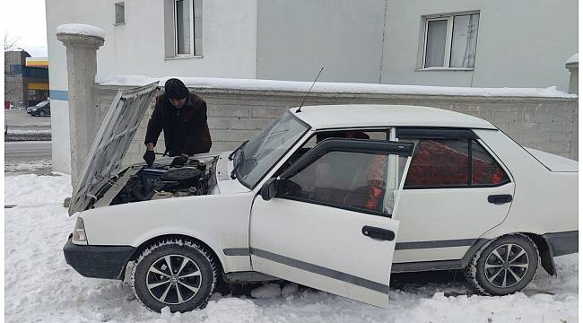 Oto elektrik ustası çağıran vatandaşlar araçlarını yedek akü ile şarj ederek çalıştırdılar.
