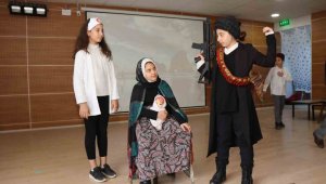 Mehmet Akif İlkokulu salonunda yapılan programda sahne alan Mehmet Akif 4/D sınıfı öğrencilerinden Nazlıcan Kurt (Kara Fatma) rolü ile Elif İnci Demircan (Şerife Bacı) rollerinde göstermiş oldukları performansla Çanakkale ruhunu yansıttılar.