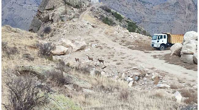 Baharın gelmesiyle birlikte dağ keçileri ilçe merkezine yakın konumlara inmeye başladı.