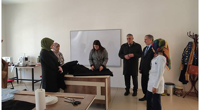 Uzundere İlçe Kaymakamı Kübra Demirer Uzundere Halk Eğitim Müdürü Selahattin Özkaya ve Uzundere İlçe Milli Eğitim Müdürü İbrahim Yılmaz eşliğinde üretim atölyesinde incelemelerde bulundular.