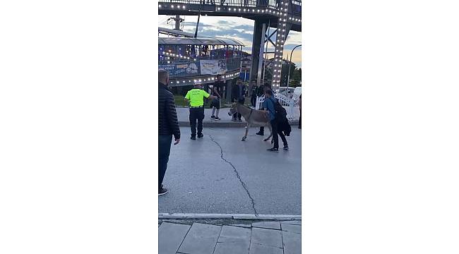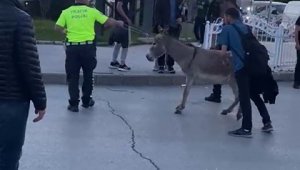 Erzurum'da başıboş gezen bir eşek trafiği altüst etti. Polis ekiplerini alarma geçiren eşek, ekiplerin yoğun çabası üzerine yol ortasından kaldırıma çıkarılabildi. Eşeğin yolda inatla beklemesi ise izleyenleri güldürdü.