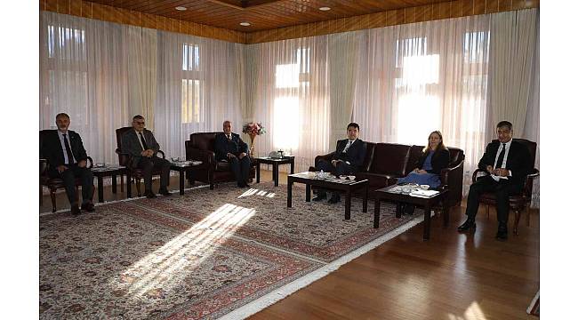 Erzurum Valisi Okay Memiş, Atatürk Üniversitesinin aldığı 'Dijital Dönüşüm ve Büyük Veri Çalışmaları kategorisinde YÖK 2022 Yılı Üstün Başarı Ödülü' ile 'Öğrencilerin En Memnun Olduğu Kariyer Fuarı' ödüllerinden dolayı Rektör Prof. Dr. Ömer Çomaklı'ya tebrik ziyaretinde bulundu.