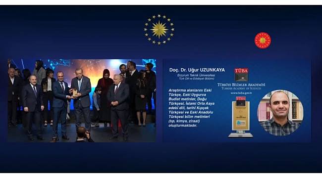 Doğa Bilimleri, Mühendislik Bilimleri, Sosyal Bilimler, Sağlık Bilimleri ile Ahmet ve Nezahat Keleşoğlu TÜBA-GEBİP Eczacılık Özel Ödülü olmak üzere 5 farklı kategoride verilen ödüller çerçevesinde ETÜ Edebiyat Fakültesi Türk Dili ve Edebiyatı Bölümü öğretim üyelerinden Doç. Dr. Uğur Uzunkaya Sosyal Bilimler alanında kazandığı ödülü Cumhurbaşkanı Recep Tayyip Erdoğan'ın elinden aldı.