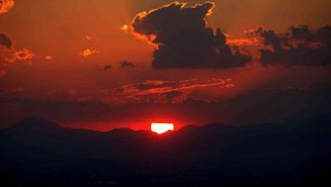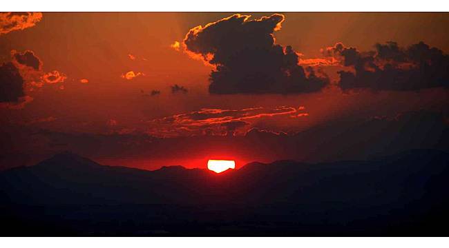 Erzurum'da günbatımıyla beraber gökyüzünü kızıla boyayan güneşin görüntüsü büyüledi.