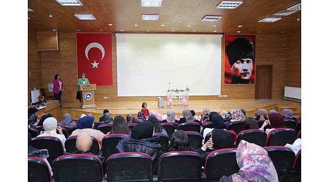 Prof. Dr. Müfide Nuran Akçay, yapmış olduğu konuşmada, kadınlarda en sık görülen kanserin meme kanseri olduğunu belirterek meme kanserinin nedenleri, korunma yolları ve erken tanının öneminden bahsetti.