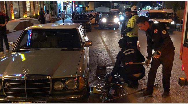 Erzurum'da bir aracın alt kısmına sıkışan kedisi yavrusunu fark eden vatandaşlar itfaiyeden yardım istedi.