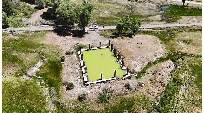Erzurum'da sıcaktan bunalan vatandaşlar, serinlemek için Akdağ Mahallesi'ndeki kaplıca suyunda yüzüyor. Kaplıcanın kartpostallık görüntüleri ise izleyenleri hayran bırakıyor.
