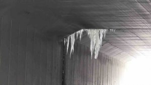 Erzurum'da etkili olan kar yağışı ve buzlanma sonrası köprülerde dev buz sarkıtları oluştu.