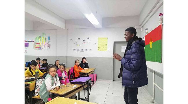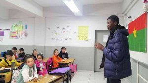 Erzurum Atatürk Üniversitesi'nde okuyan Kamerun, Burkina Faso ve Senegal'den gelen öğrenciler ülkelerini ortaokul öğrencilerine tanıttılar.