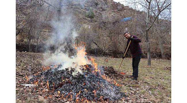 Ormanağzı köyü Pokens Mahallesi sakinlerinden Ömer Aydın, "Bahçemizde bahar temizliği yapmaktayım. Ağaçlarımız yaprak açmak üzere, biz de kenar köşesinin temizliğini yapıyoruz" dedi.