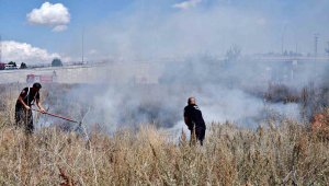 Erzurum'da boş alanda meydana gelen ot yangını bir anda her tarafın alev sarmasına neden oldu.