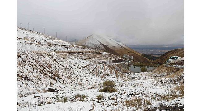 Erzurum şehir merkezinde dün akşamdan itibaren aralıklı olarak etkili olan sağanak yağış, yüksek kesimlerde kara dönüştü. Palandöken Dağı'nda yer alan Palandöken Kayak Merkezi pistinin zirve noktası olarak bilinen 3 bin 200 rakımlı Ejder Tepesi, yeniden beyaz örtüyle kaplandı. Sarı, yeşil ve beyazın ortaya çıkardığı kartpostallık manzaralar havadan görüntülendi.