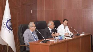 Araştırma Hastanesi konferans salonunda Tıp Fakültesi Dekanı Prof. Dr. Fatih Albayrak ve hastane Başhekimi Prof. Dr. Fuat Gündoğdu ile birlikte akademisyenlerle buluşan Rektör Çomaklı; tavsiye, talep ve önerilere yönelik fikir alışverişinde bulundu.