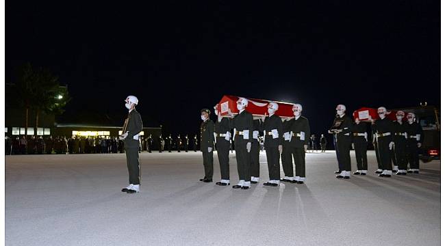 Şehitlerin Türk bayrağına sarılı naaşları görev arkadaşlarının omuzlarında tören alanına getirildi. Burada şehitlerin öz geçmişi okundu ve dualar edildi. Törenin ardından şehit Uzman Çavuş İdris Şahin'in naaşı memleketi Mersin'e, şehit Ceyhun Arslantürk'ün naaşı ise memleketi Ordu'ya uğurlandı.
