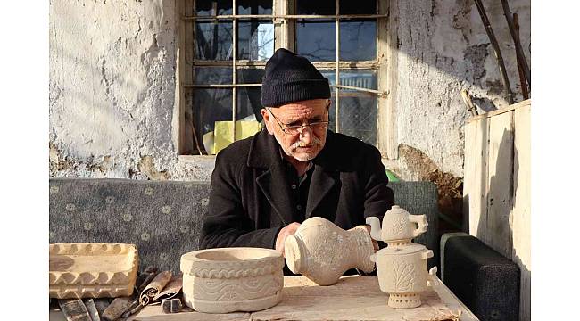 69 yaşındaki Yunus Soylu taş oymacılığının çok zor olduğunu her bir ürün bir aylık bir süre içerisinde ancak yaptığını söyledi.