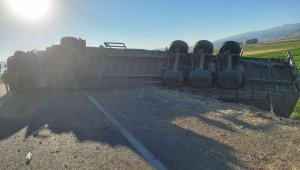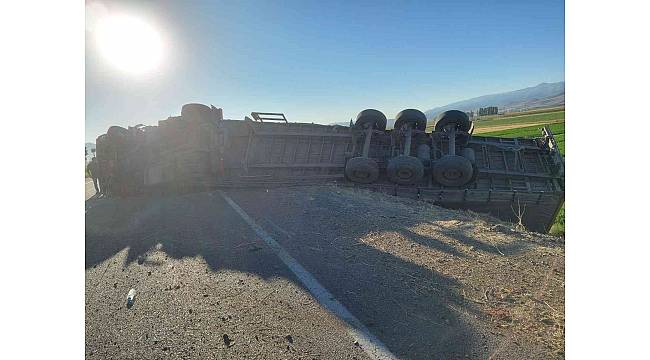 TIR'ın karayolunu trafiğe kapatması nedeniyle trafik bir süre tek şeritten kontrollü olarak sağlanabildi.