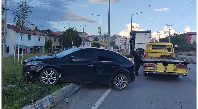 Erzurum'un Aşkale ilçesinde, yanında ilerleyen otomobili fark etmeyen tır sürücüsü, çarptığı aracı refüje kadar sürükledi.